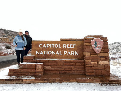 I will be honest and say that this was A LOT of hiking for me. All day, every day. Once we got to Capitol Reef, it was cold and snowing and the hiking and weather started to wear on me. I realized we still had many days of strenuous hiking in front of us and I had a little bit of a MoMeNt. IYKYK. If you’re going to try to fit in all five parks in one trip, I would highly recommend alternating early wake up/heavy hike days with later wake ups/lighter sight-seeing days.